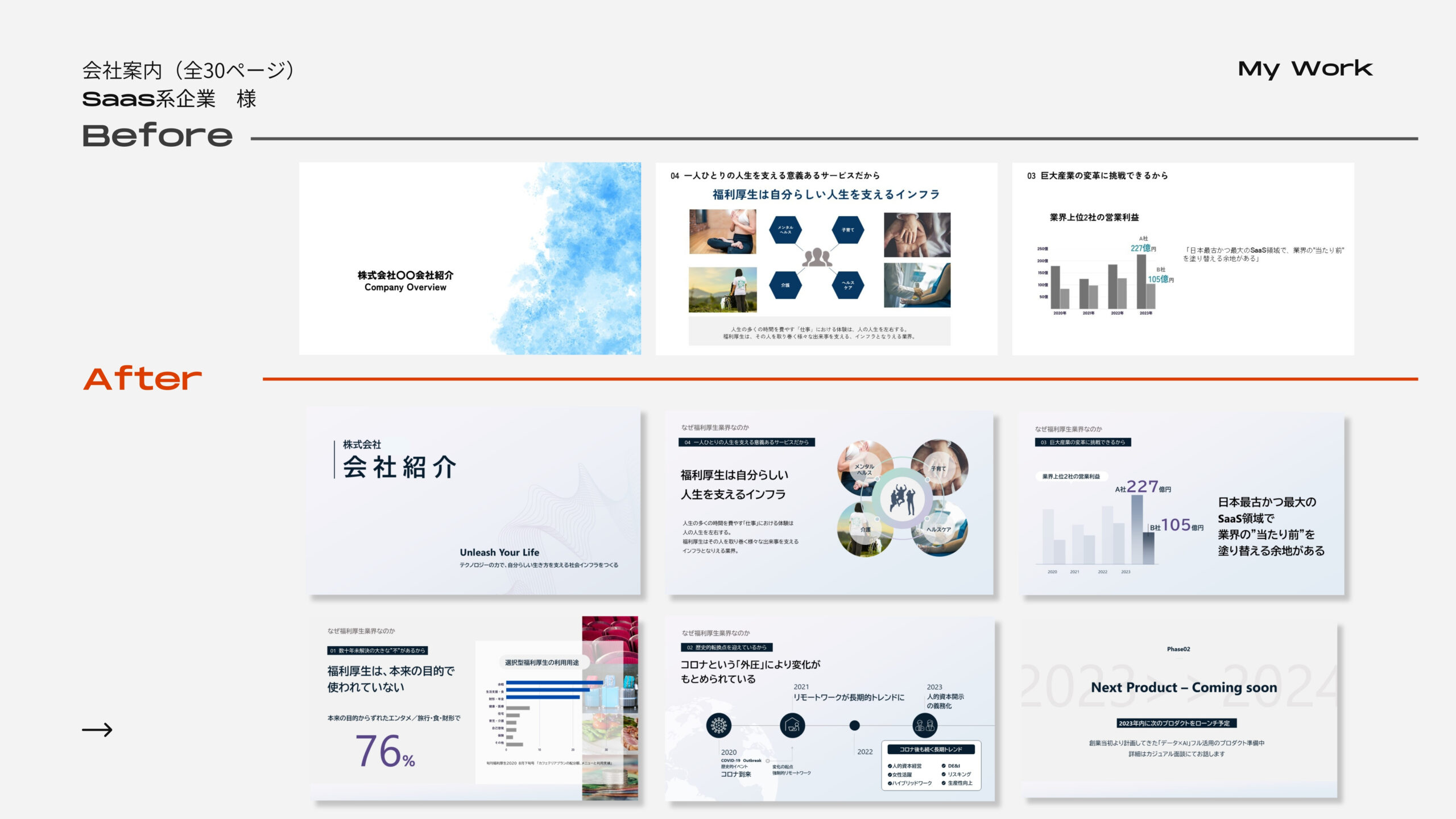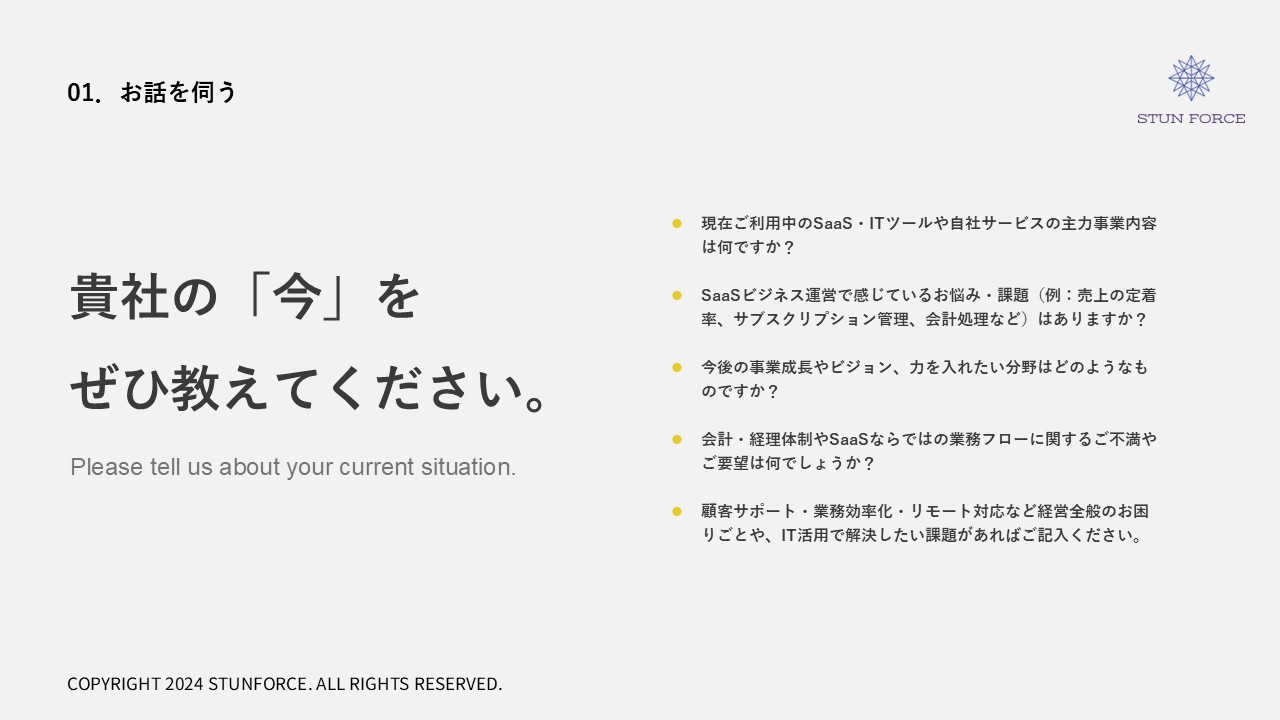 プレゼン資料・営業資料・サービス資料など様々な用途に対応。